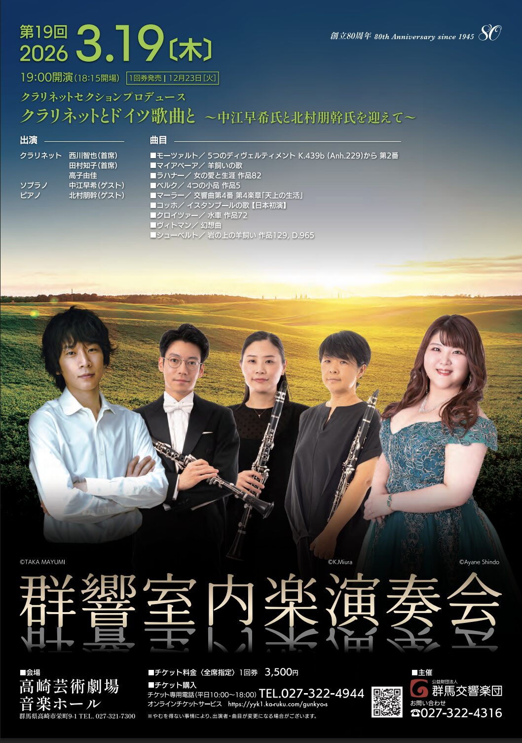第19回 群響室内楽演奏会 クラリネットセクションプロデュース クラリネットとドイツ歌曲と ~中江早希氏と北村朋幹氏を迎えて~